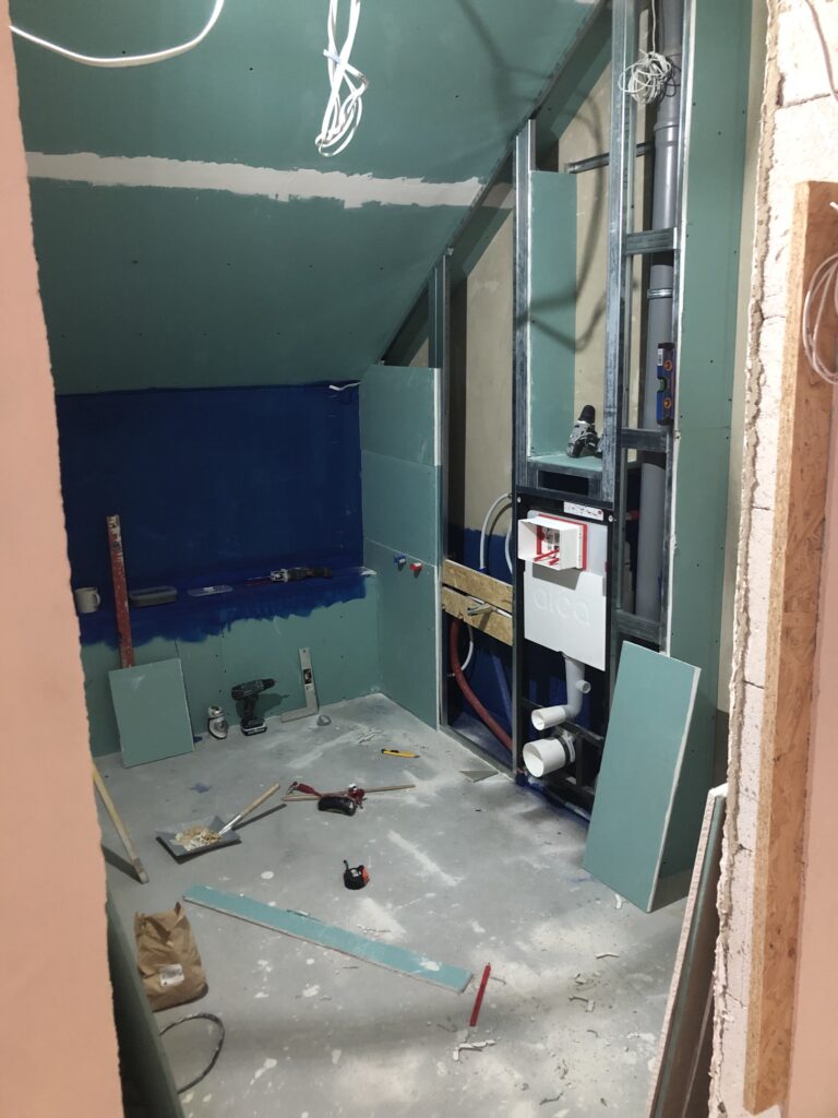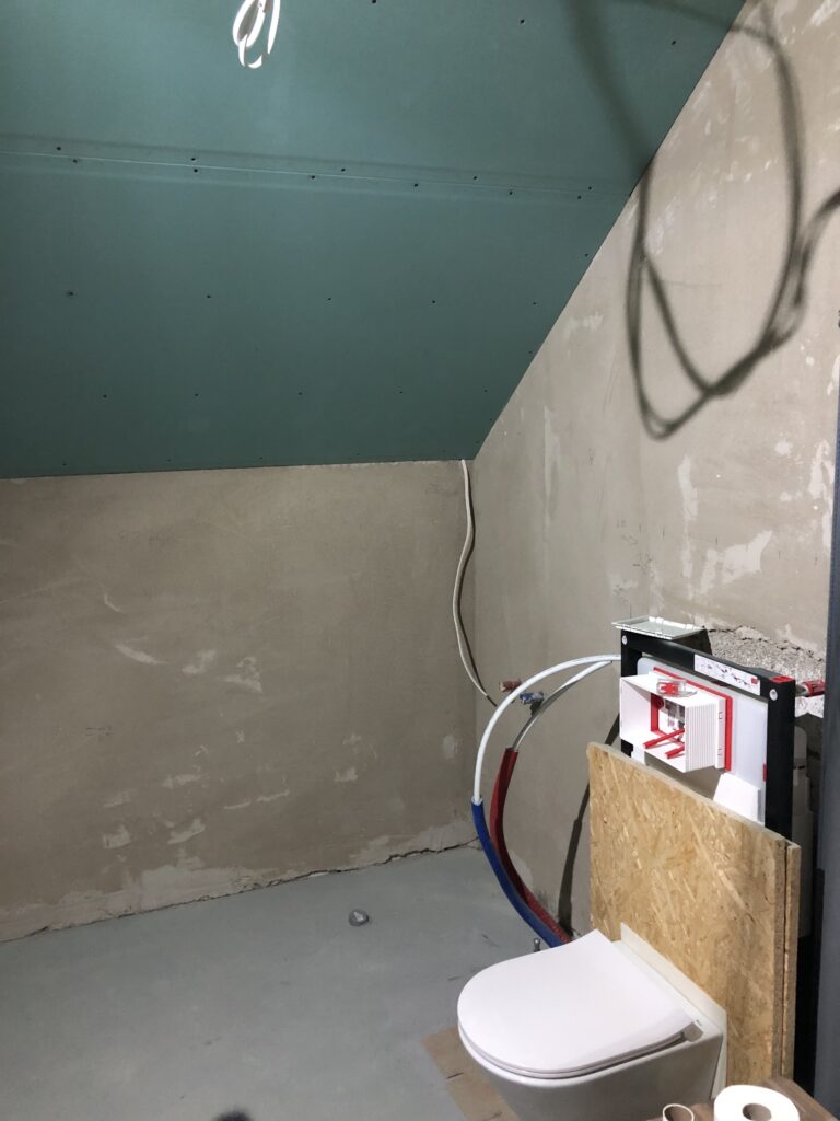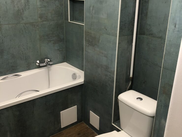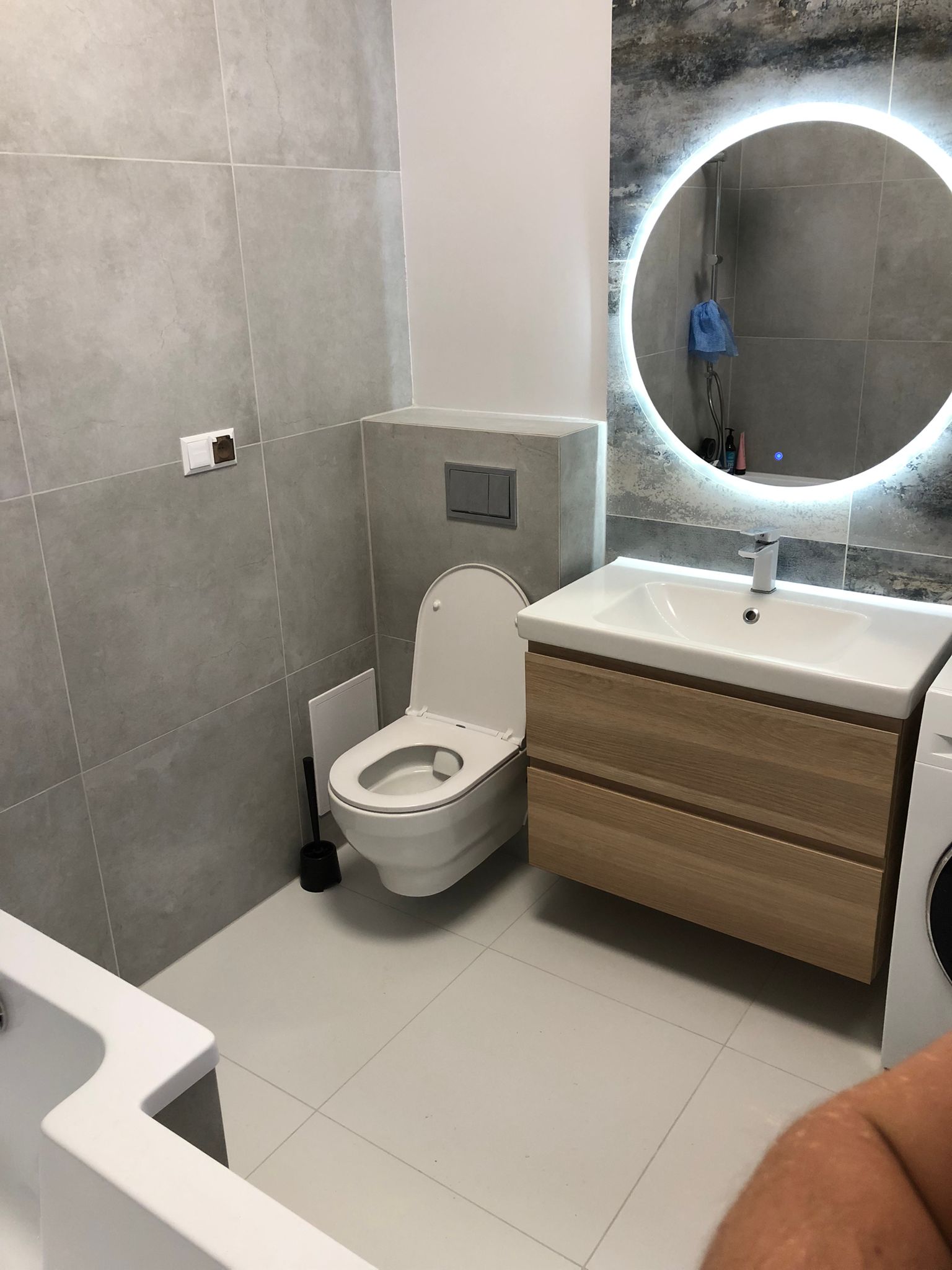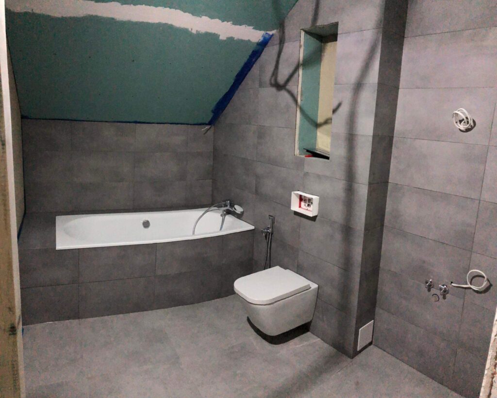 Wykończenie łazienki ze stanu deweloperskiego do użytkowania komplet instalacji hydraulicznej, elektrycznej, grzewczej, kanalizacyjnej, układanie płytek gresowych, płytki z docięciem 45 stopni, fugowanie, montaż armatury, wanny.