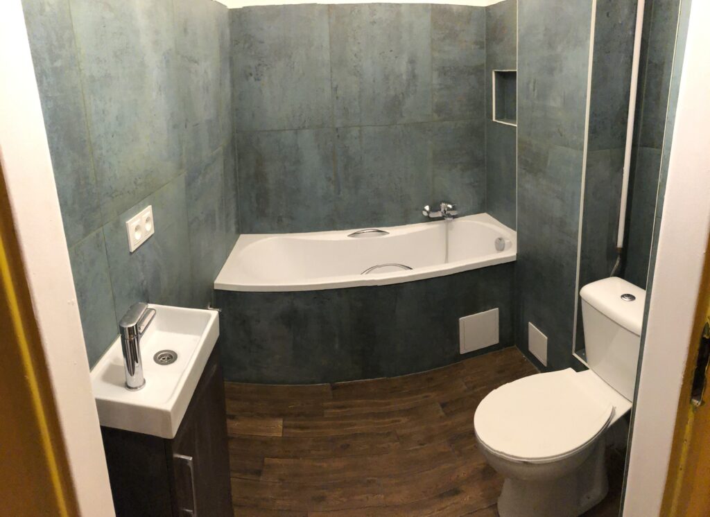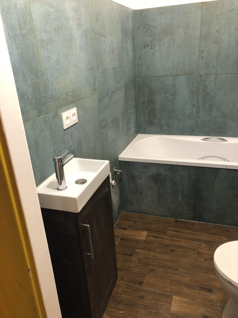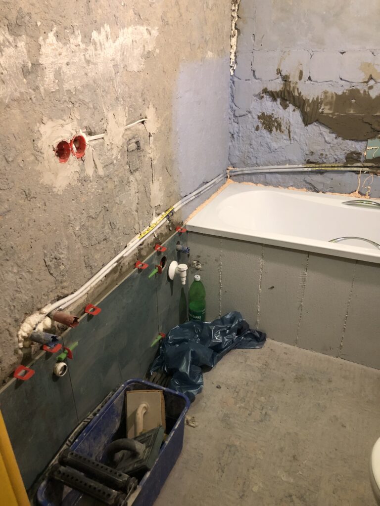 Remont łazienki w bloku, kompletne wykończenie i wymiana instalacji hydraulicznej, elektrycznej, grzewczej, kanalizacyjnej, układanie płytek gresowych, ceramicznych w 3 wzorach, montaż armatury.
