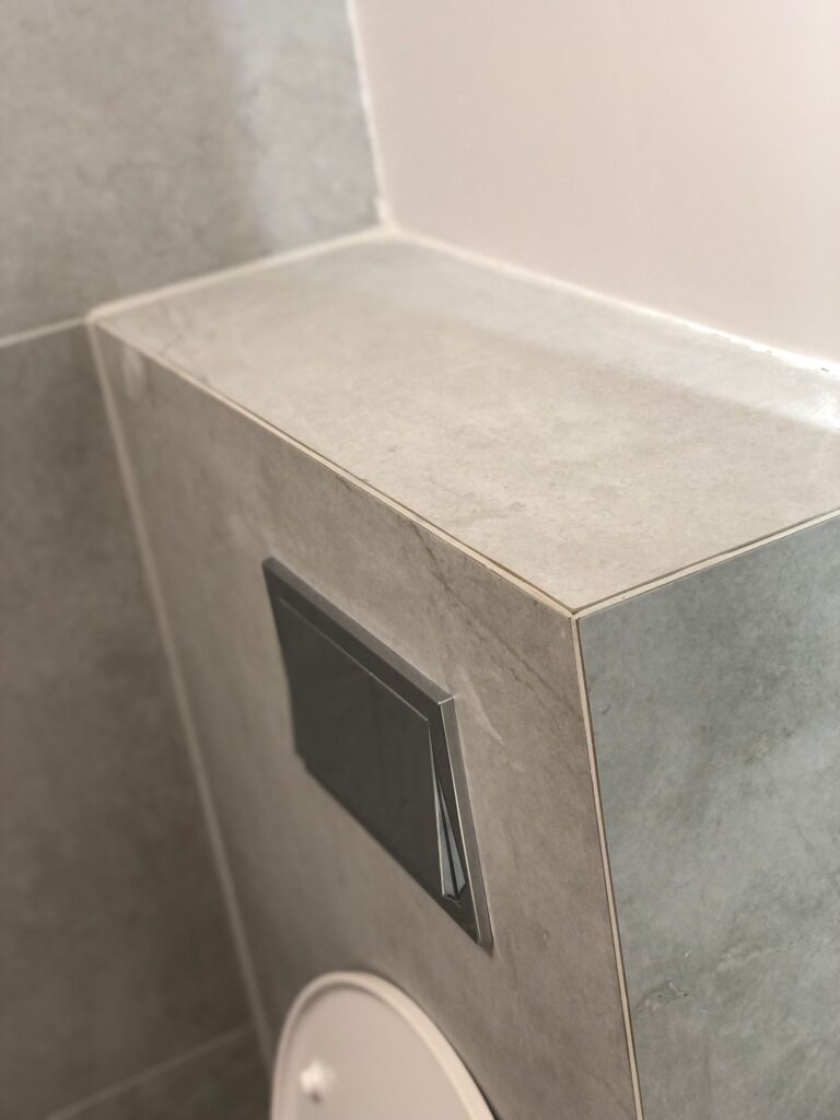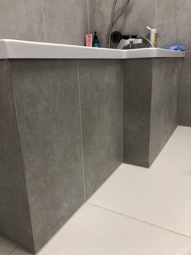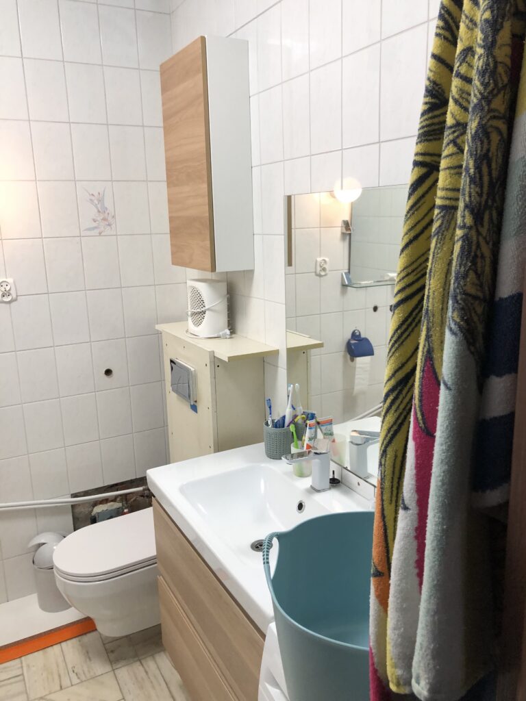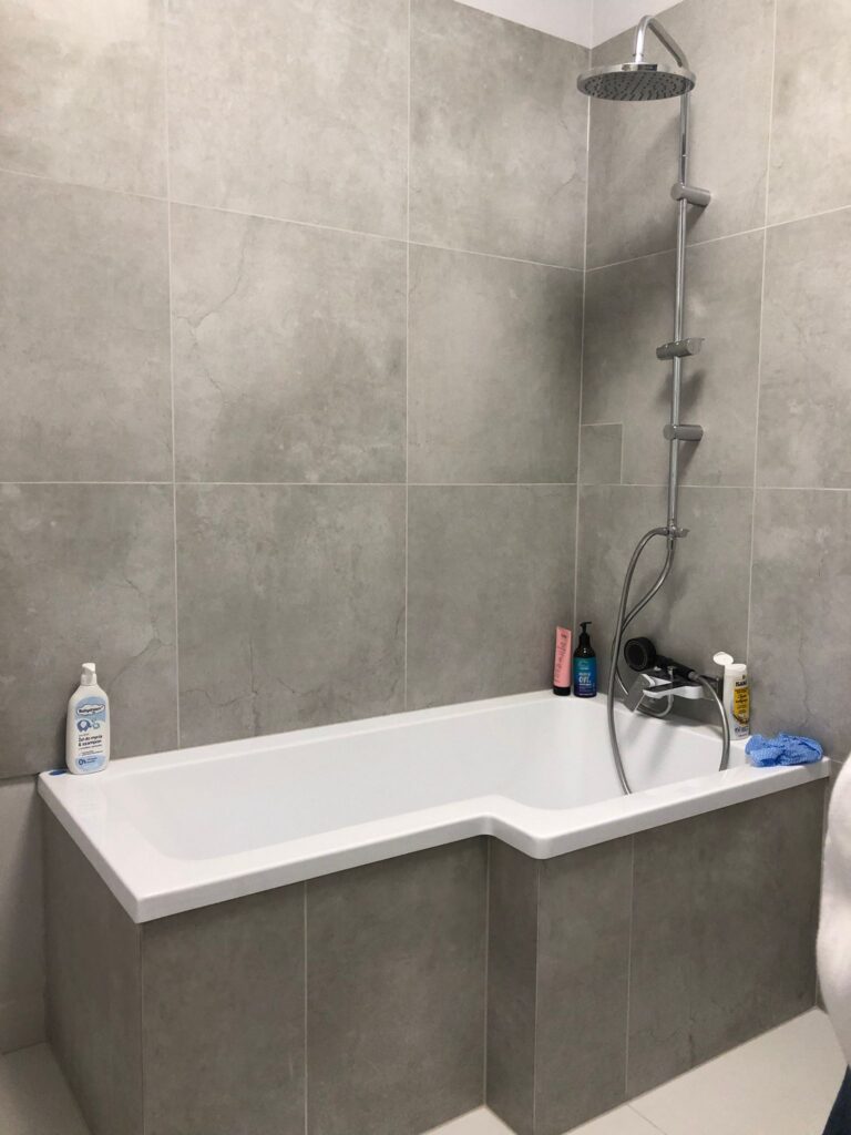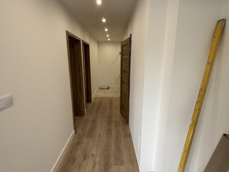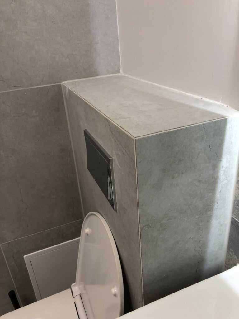 Projekt ten obejmował usunięcie starych powłok, wymianę instalacji hydraulicznej, elektrycznej, grzewczej, kanalizacyjnej, budowę ściany maskującej, wykonanie sufitu podwieszanego, układanie płytek gresowych w 3 wzorach, płytki z docięciem 45 stopni, wykonanie maskujących rewizji do zaworów gazowych, odpływów, montaż armatury.