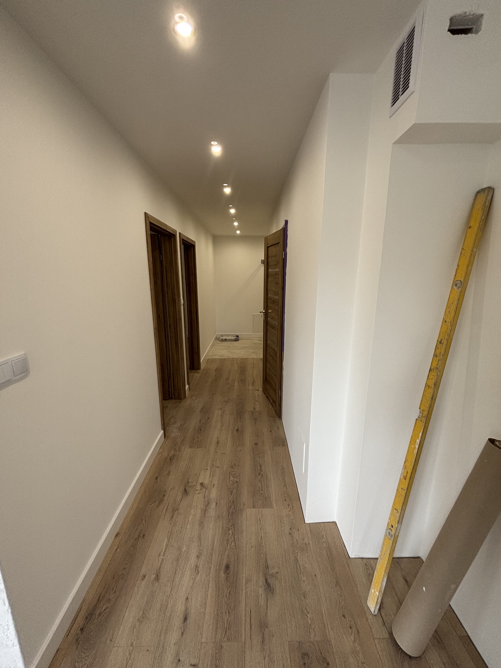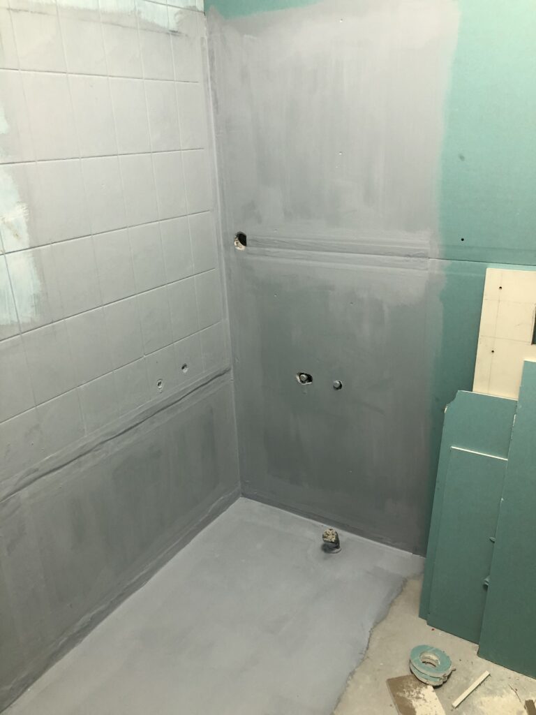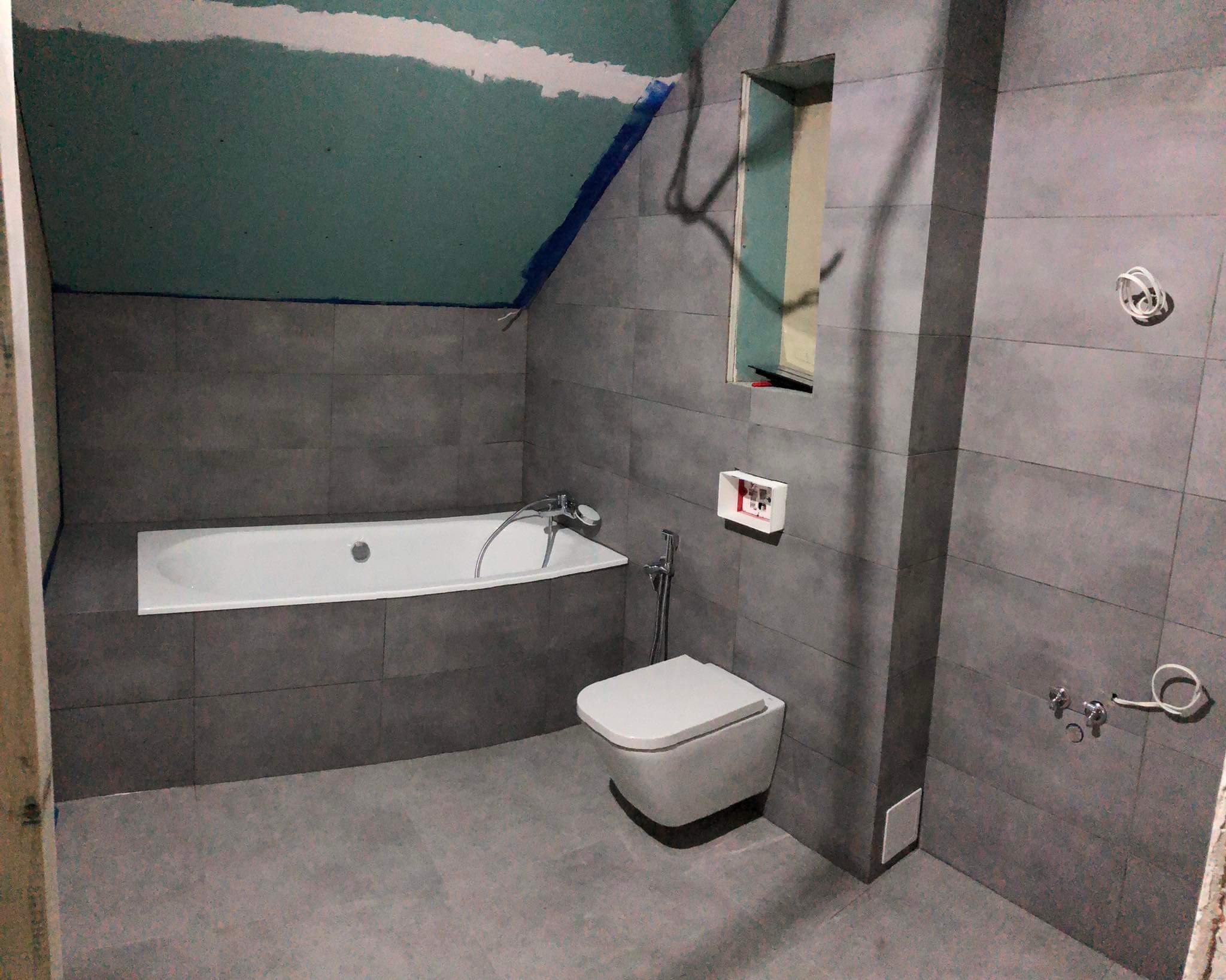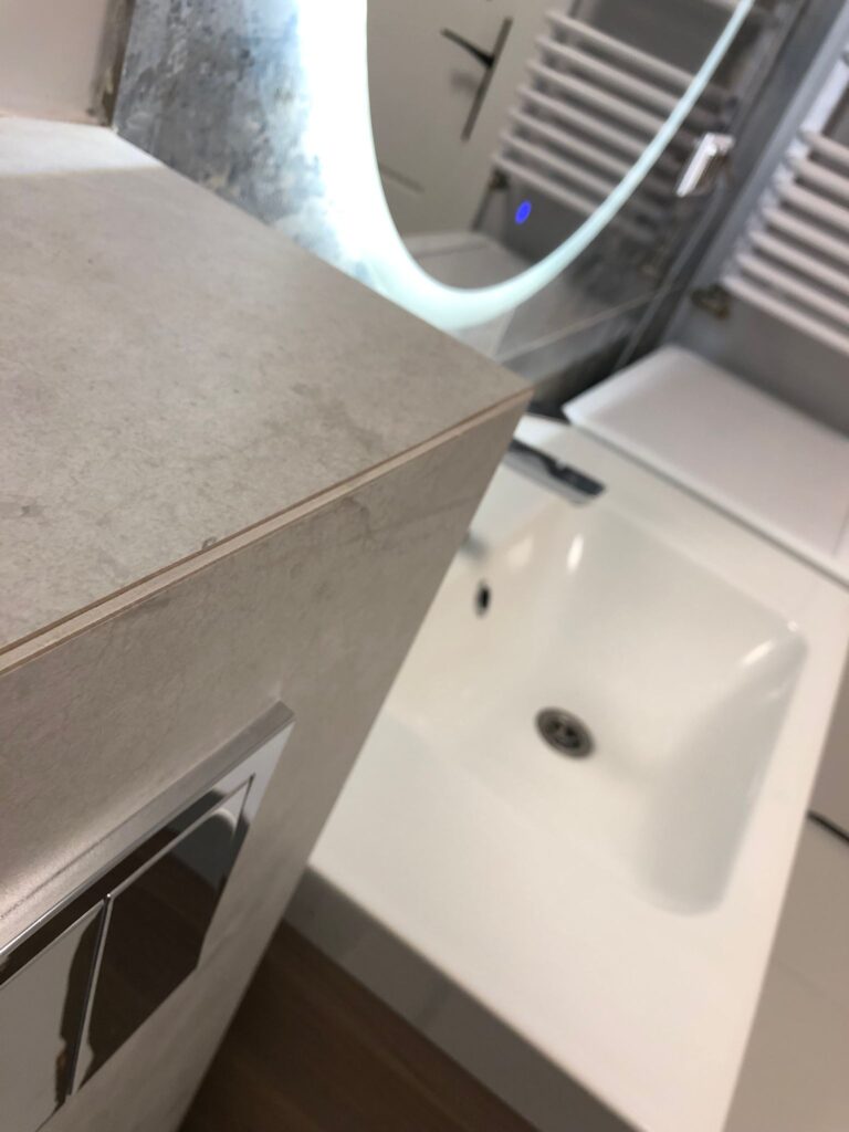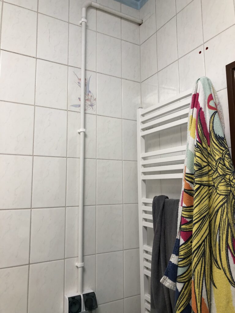 Projekt ten obejmował usunięcie starych powłok, wymianę instalacji hydraulicznej, elektrycznej, grzewczej, kanalizacyjnej, budowę ściany maskującej, wykonanie sufitu podwieszanego, układanie płytek gresowych w 3 wzorach, płytki z docięciem 45 stopni, wykonanie maskujących rewizji do zaworów gazowych, odpływów, montaż armatury.